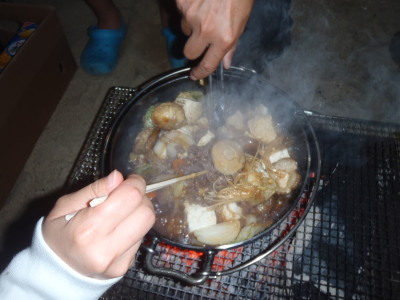 宮浜温泉の宮浜グランドホテルでスッキリした後は ナルーに戻り夜の部です。 ダッチオーブンでスキヤキです!