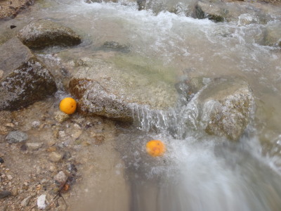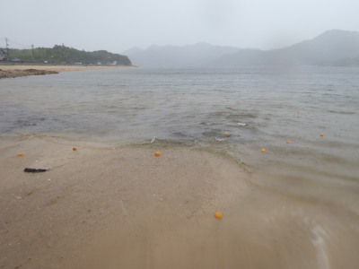 次から次へと大量の夏ミカンが流れて来ました。 |