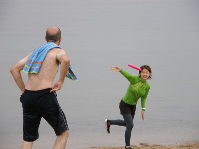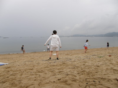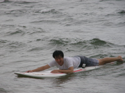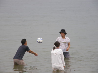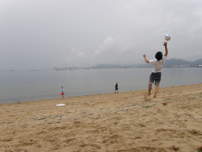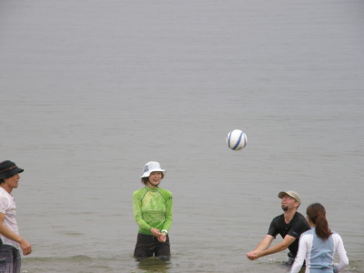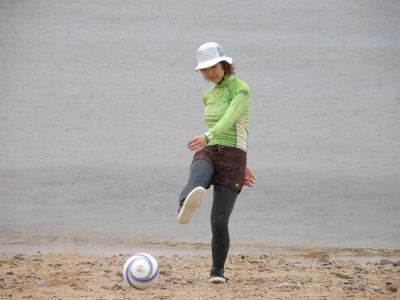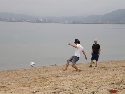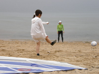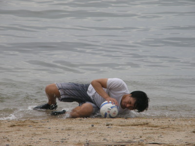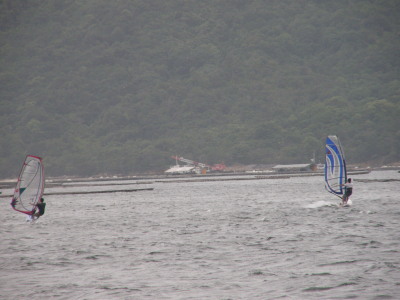 2011 06 26(日) 無風のち南5.3〜6.2 まったりとした無風ナルーでした。 キャンプカレー食べて、サッカーしてバレーしてフリスビーしてと楽しく海遊びしました。 と、そんな風の吹く気配のない無風日和でしたが、突然15時頃から爆風が吹き荒れました。 それから日暮れまで5.3のち6.2で吹きまくりでした。 こんな荒れ狂うナルーは久しぶりです! |