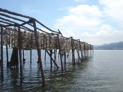 牡蠣の種付け中!? ホタテの殻に付けます。