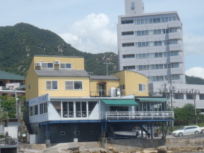 ここが広島でチョー有名なカフェの ZIZO&PAS DE SHATです。 海からお邪魔しました。 次はおこずかい持ってランチに来ます。 もちろん、海からですね☆