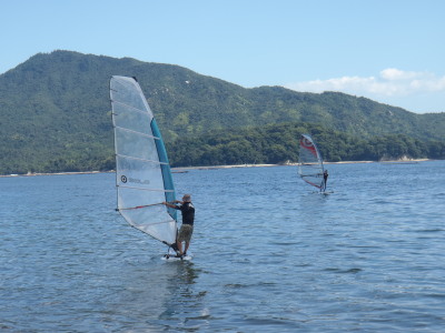 2011 09 23(金) 南東 〜南西 微風 風はイマイチでした。 久しぶりの祝日のナルーです。ヨネさんとオキハラさん、そしてセクシーとナルースタイルです☆ セクシーとSUP&ウインドで宮島の長浦まで行きました。 白砂でベリービューティフォービーチです☆ 先週に続き瀬戸内リゾートを満喫しました! |