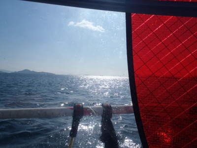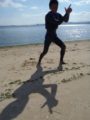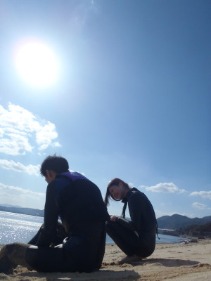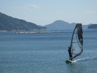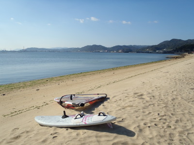 玖波港ビーチです。 ここに砂浜があったとは・・・(>_<) 北東の風で流された時にはここに辿り着きましょう(笑)