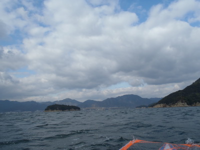 その後、宮島七浦巡りの第5社を目指して 宮島裏まで行きました。 こちらは爆風地帯でした(>_<) 可部島の裏っちょです。この辺に第5社があるはずですが・・ 今回はたどり着けずザンネン! 次回のお楽しみです♪
