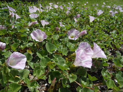 浜昼顔・・・ 毎年、この時期にナルーに咲く花です。 お花って、心が豊かになりますね。 キレイな空と海の側のビーチで毎年必ず咲きます。 今日、初めてこの花の名前を知りました・・・ ビーチに昼に咲く花と言う意味で浜昼顔(はまひるがお) なんですかね? |
