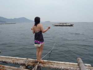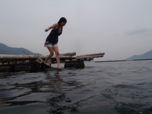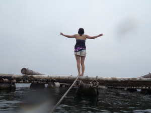 向こうのイカダまで綱渡りするぞ〜〜〜!