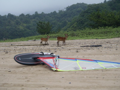 いつ見てもウインドサーフィンとシカさんって、 贅沢な景色です。