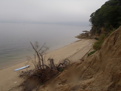 こっち、宮島から見た大竹市。 崖崩れで、松の木がいくつも崩れ落ちています。 もう何百年?何千年前のお話しでしょうかね?? |