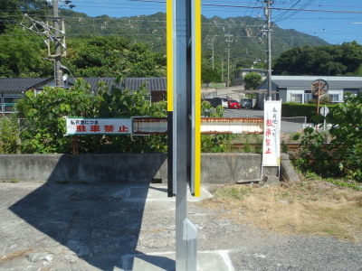 看板を挟んで右左が駐車エリアです。 駐車しにくいですが、頭絞って止めて下さい。 右側はKカーなら2台、普通車で一台。 左は普通車8台は停めたいですね!