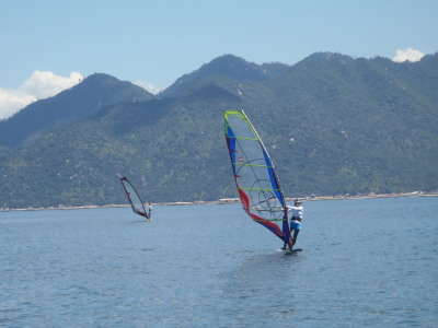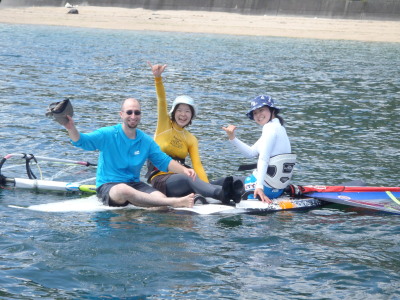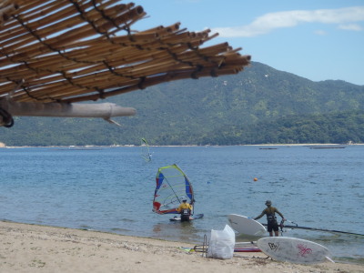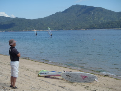 2012 08 25(土) 東→南 1〜3m/s 今日もご機嫌な夏空です☆ 風はぼちぼちと無風よりはよっぽど良い感じ〜〜〜。 明日は毎年恒例の宮浜温泉まつりウインドサーフィンスクールです。 今年は過去にないウインド育ち盛りの年齢層のメンバーが終結です。 さてがんばろ! そして、スタッフの皆さんご協力お願いしますね♪ |