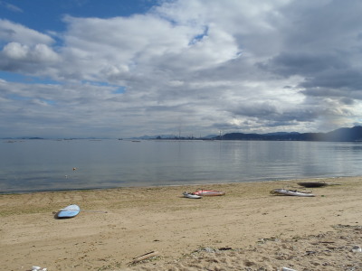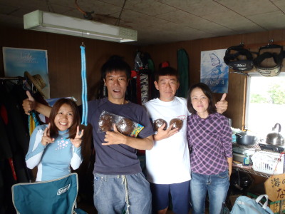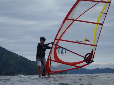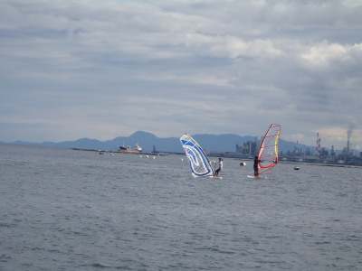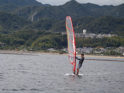 2012 09 30(日) 北東〜東南東2〜5m/s 台風17号に期待しましたが、午前中雨が降り風はいまいち吹き上がらず、 昼からは雨も止み晴れ間が出ました。 お帰りなさ〜い! ゴジー&ちえみちゃんの日本国内復帰ウインドサーフィン一日目でした♪ 夕方、少しだけプレーニングしました。 |