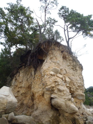 宮島自然はスゴイです。 実は、知らないだけで屋久島の自然よりもスゴイかも・・・ こんな崖っぷちの土のないとこで根を生やして木が育ってます。 宮島天然記念樹発見!