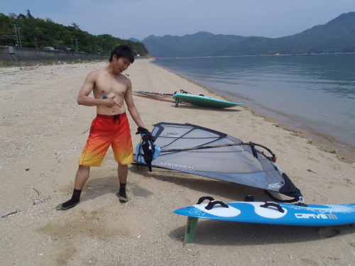 2013 05 18(土) 南東〜南微風 予報通りに吹きませんでしたが、予報以上にちょっとだけ吹きました(笑) 暖かくなってきたのでナルーが賑わって来ました。 初の外国人スクール生にNEWボードを購入したたくちゃんと、 そして、いきなりのゆうたくん登場! それにレギュラーヨネさん&コウブさんと一緒に楽しく過ごしました! |