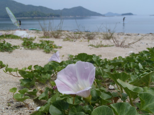 今年もナルービーチに美しくもあり、かわいくもある浜昼顔が咲きました。 今が見頃です!