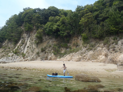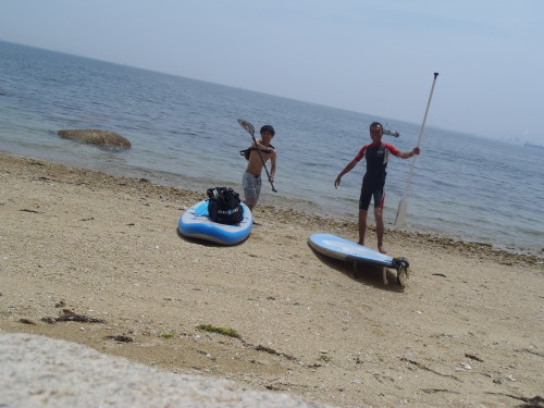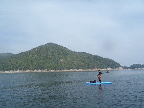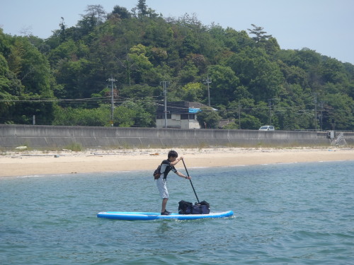 たくちゃんと可部島までSUPクルージング! ウインドも出来てカヌーも出来て、道具も詰めるし、 まさにナルー仕様のSUPです!