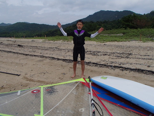 2014 07 05(土) 南東1〜4m/s 今日も宮島へ行きました♪ この時期は、ナルーインサイドは吹かなくても宮島はプレーニングコンディションが続きました。 2kmの違いでこんなにコンディションって違うんですね! 勉強になりますね〜! 今日は中学一年生のこうやがウインドサーフィンをしにきました。 この年頃ってスゴイ完成です! この子なら確実にプロウインドサーファーに育てる自身があります。 10代の子がウインドサーフィンに嵌ればこの業界が明るくなるでしょうね〜〜〜!