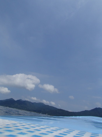 2014 08 17(日) 南西1〜5ートルのち北西微風 今日はこの盆連休一番の夏の日差しがやってきました。 夏らしい一日で爽快です! 風は宮島付近で今日も良い感じに吹きました。 ナルービーチ、須屋浦ビーチ共に夏のマリーンスポーツを楽しい人達で 賑わっていました♪