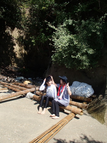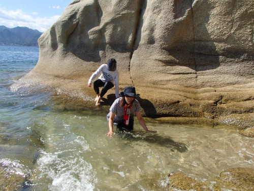 長浦ツアー。 今日は潮が上がってたので、砂浜が出てませんでした。 海の中のビーチ巡りです。 いずん、私服です(笑)