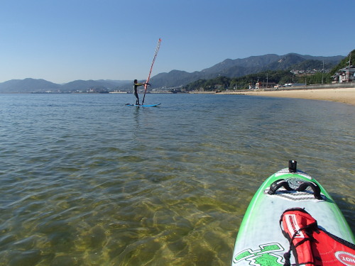 2014 10 19(日) 北東のち南西 微風 ご機嫌な雲ひとつない天気でした。 コージが朝練にやってきました。 上りも出来るようになったのでもうすぐフリスタ100Lの板で飛びまくると思います。 さすがサーファーですね。覚えが早いです。 ヨネさん、昼から登場。SUPでクルージングを楽しんでいました。可部島まで行ったかな? ニューボードのナルー潜水式も無事に終了!この板滑るし回りやすいです。なんと言ってもゲコーが簡単! まっ、JP、ファナティック、スタボとフリスタの板を乗り換えましたが、 ファナティックのスケートはゲコーが難しい板というのが良く分かりました・・・ | ||