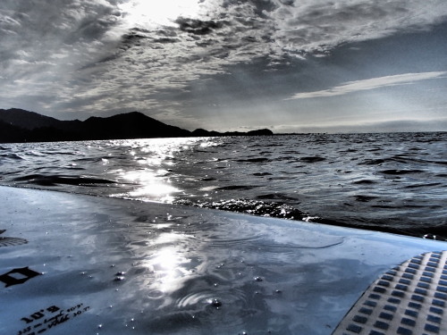 SUPクルージング7艇の方と出会いました。 マジ漕ぎしてる方とのんびりクルージングしている方といろんなスタイルの方がいました。 トップを行く方と後ろを行く方では余裕度が違いますね。 後ろへ行く方とお話しして頂きました♪
