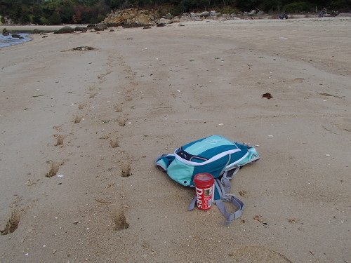 須屋浦ビーチへ到着! 鹿さんの足跡がアーティスティックです☆