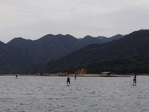 可部島がすぐそこです。 SUPで可部島へ上陸してました。7艇発見!