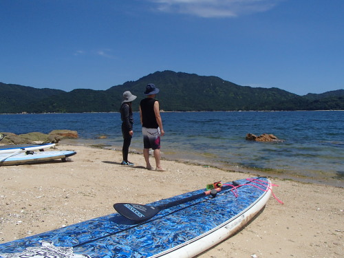 鹿児島から大竹に転勤されてきたご夫妻さんです。 SUP体験スクールへのご訪問です ♪