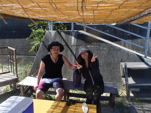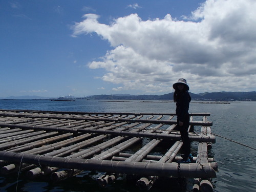 牡蠣イカダに上陸! |