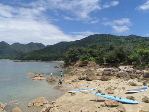 南1〜3m/sのち南西6.3 今日もSUP体験スクールでした。