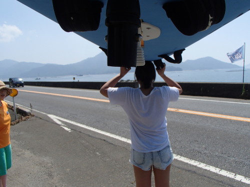 二人で楽しいタンデムウインドサーフィンです。 持ち運びも二人で仲良くです♪