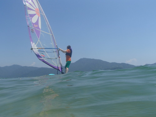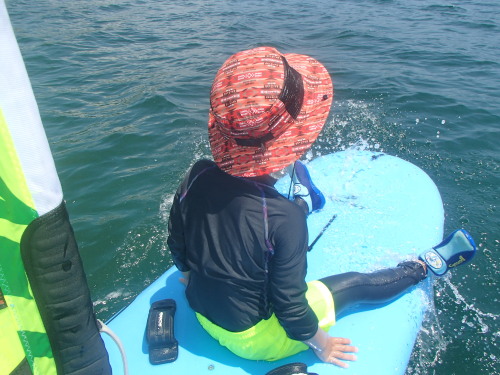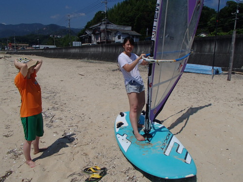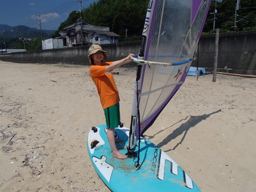 小さな子ですが、海を怖がらずに一緒にウインドサーフィンしました。 41の子供の頃は絶対に怖くてできなかったです(^_^;)