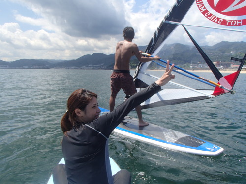 今日のお二人はウインドセンスがバッリシです! 1回目で乗れていました。 ウインドセンスがある人の特徴はライトウエイトです。 すぐに乗れるのは確実にライトウエイトの方ですね♪ お客様にいろんなこと勉強させて頂いてますm(__)m
