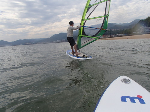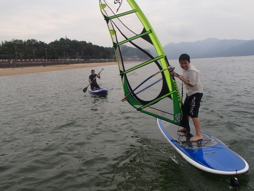 2015 09 12(土) 南東1〜2m/s SUP体験とウインドサーフィン体験スクールでした。 SUPは女性2人です。 今回もヨガ志望者さんでした。 大人気ですね! ウインドサーフィンは親子でご体験です。 二人ともセンス抜群で直ぐに乗れるようになりました♪ ウインドサーフィンを続けて頂けると嬉しいです(*^_^*) | ||