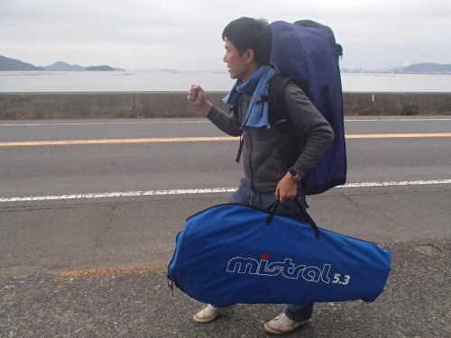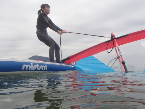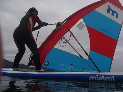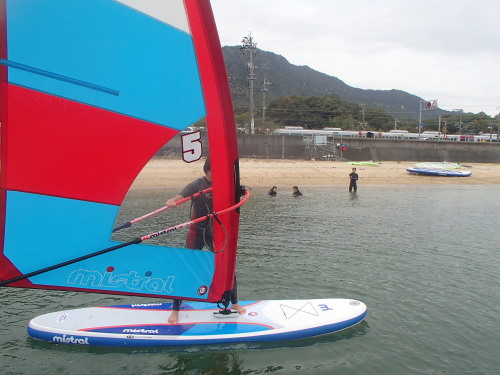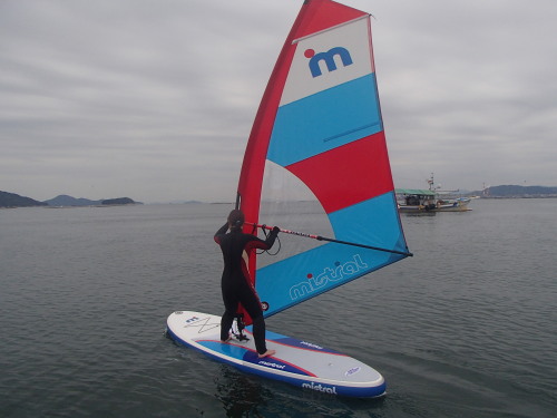 ミストラルのwind SUPです。 これがホントスゴイ!背中にSUP、片手にリグを持てば 電車でどこへでも運べます。 これがチョー軽いです! 風がない時はSUPでウインドのリグを持って風が吹けばウインドが楽しめます。 これ欲しい!!!(≧▽≦)