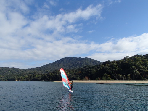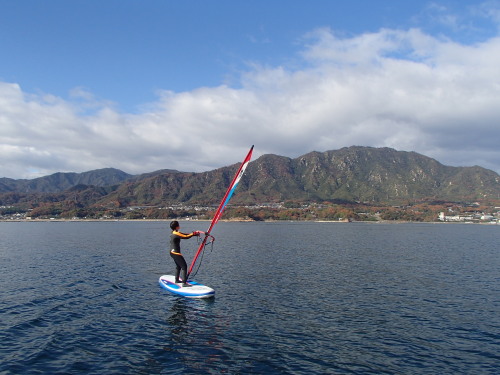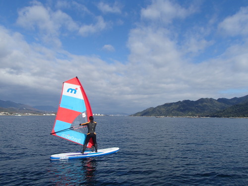 2015 12 13(日) 北東チョイブローのち南西スクール日和のち無風 はるかちゃんがやって来ました♪ ついにWIND SUPゲットです! 早速、一緒に宮島まで行きました。 初めての宮島! 興奮する〜〜〜っ! | ||
