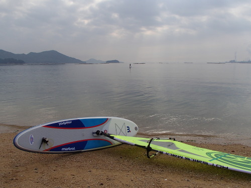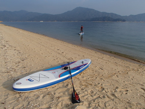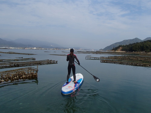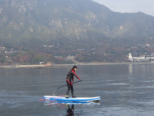 さおりちゃん、ちょっとウインドしてたら一人で宮島まで向かってました。 実は2回目のSUPです。 好奇心旺盛のナルーモデルです。
