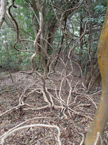 宮島原始林です。 ここの樹木は見るもの全てが芸術作品です! ツタが絡み合って、41が網に掛かりそうです笑っ