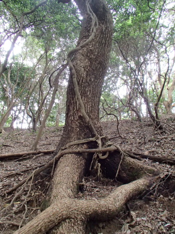 この辺の木はどれも二股に大きく割れています。