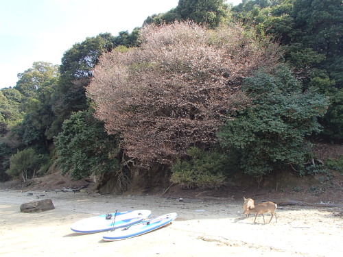 満開! とは行きませんが、きれいなビーチ桜が咲いていました。 宮島の中でも海を愛する人しか見ることが出来ない貴重な桜です。