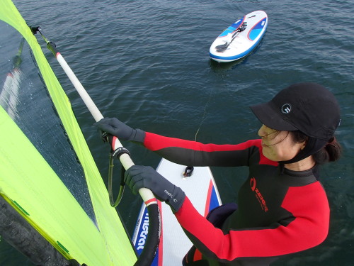 さおりっちゃん、最後はウインドサーフィンの練習です。 おつかれさまでした!