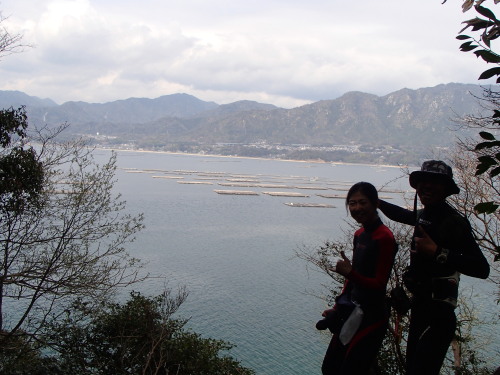日本本土ナルーを望めるこの景観を目にしたのは人類では 41とさおりちゃんが初めてに違いありません。 いつか、宮島クルージングでご招待したいです。 因みに道は獣道です(笑) |