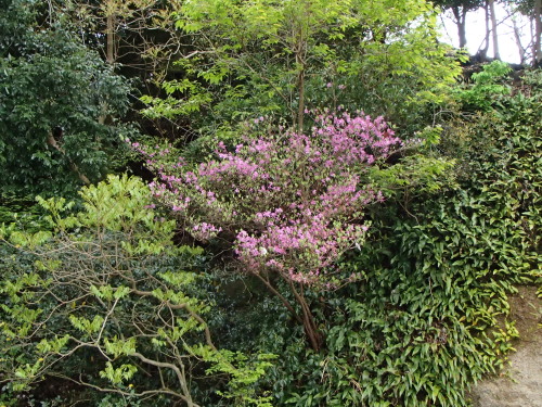 宮島の山がきれいです。 ムラサキの花 なんてえのかな?