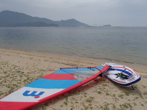 2016 04 24(日) 西 微風 無風でした。 Wind SUPでセイリングで宮島へ目指しました。途中微風になったのでパドリングに切り替えです。 Wind SUPならウインドではいけない秘境の場所まで入ることが出来ます。 新しいウインドサーフィン時代の到来です。 | ||