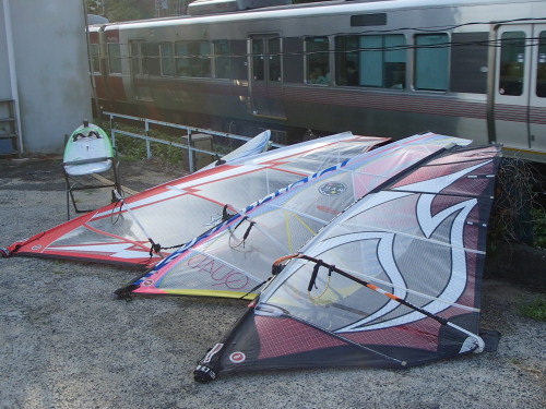 今日使用した道具です。 ボード 91WAVE、101フリスタ セイル 4.7 5.2 5.9 全て使いまくりで一日中ウインドサーフィン三昧でした! おナルさま、GWにステキな風をありがとう! JR西日本さんもお祝いありがとう!笑っ