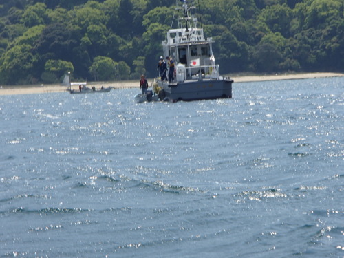 始めてみました。 強風の所為ですかね??? グレーの海上保安庁が漁船を救出ちゅ〜でした。