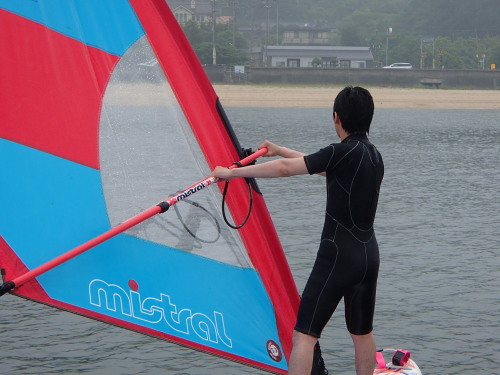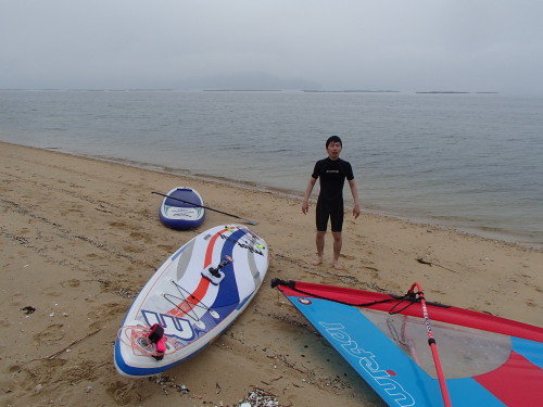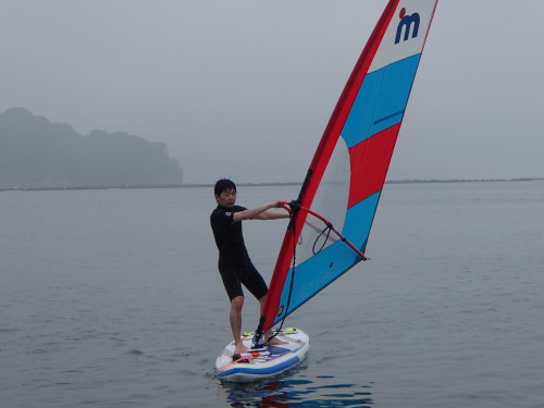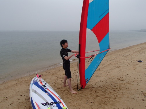 天気イマイチですが、今日はウインドサーフィンスクールです。 材木座海岸でSUP体験中にウインドサーフィンをしているのをみて 体験したくなったそうです。 嬉しいですね♪
