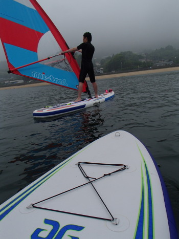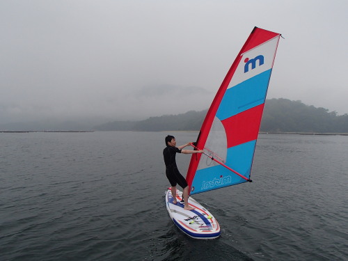 2016 05 29(日) 東 1〜2m/s 今年2回目のウインドサーフィンスクールです。 Wind SUPをゲットしたおかげでスクールが簡単です。 道具が軽くてバランスが良く、そしてコントロールしやすいので スクール生の覚えも早いってもんじゃありません。 今日は初ウインド体験でいきなり宮島まで渡っちゃいました! | ||