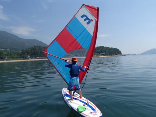 2016 06 18 (土) 南 0〜3m/s 梅雨の合間のご機嫌な晴天日和でした♪ 海遊びするには絶好のコンディションでした。 今日は、広島市からスクール生がやってきました。 そのスクール生ですが、なんと嬉しいことに41と同じWind SUPをお持ちでした! しかも、ナルペを見て頂いてて、購入前からWind SUPの記事も見て頂いてたそうです。 嬉しいですね! こんなに楽しい、アクティブマリーンスポーツの道具は他にないと思います。 一人の人に、このWind SUPの魅力を感じて頂いたことに涙です・・・