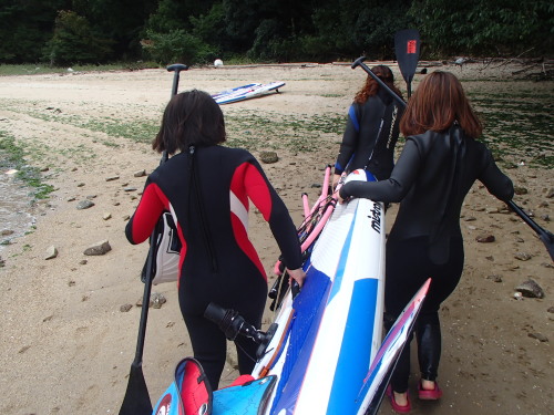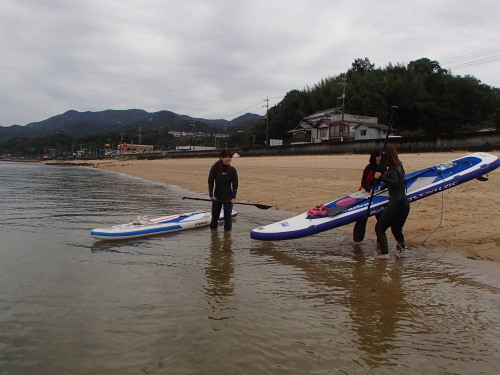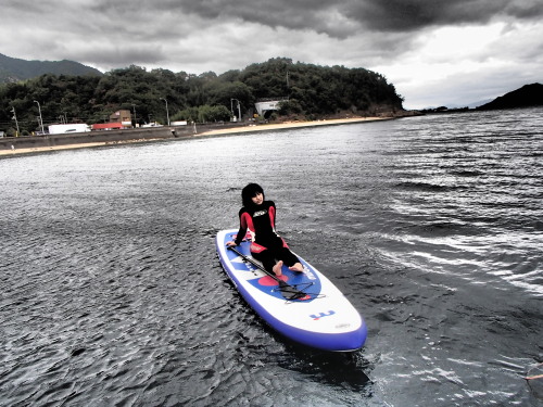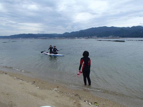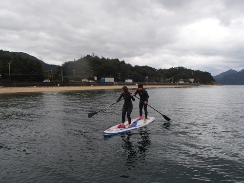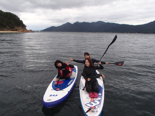 風が少し落ち着いたので、須屋浦までSUPクルージングです。