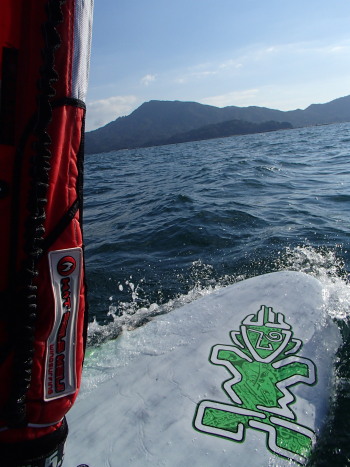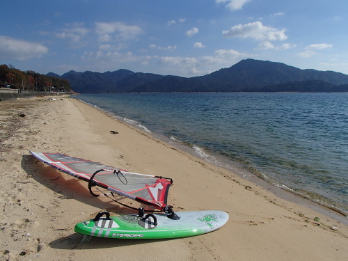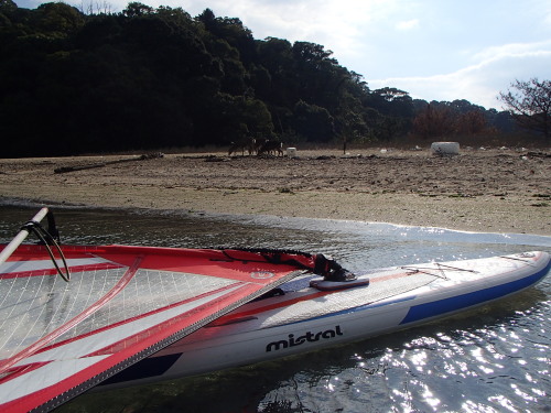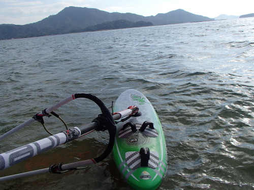 朝は59でちょいプレーニング、その後12時前後は西が落ちて、ウインドSUPで宮島に遊びに行きました♪